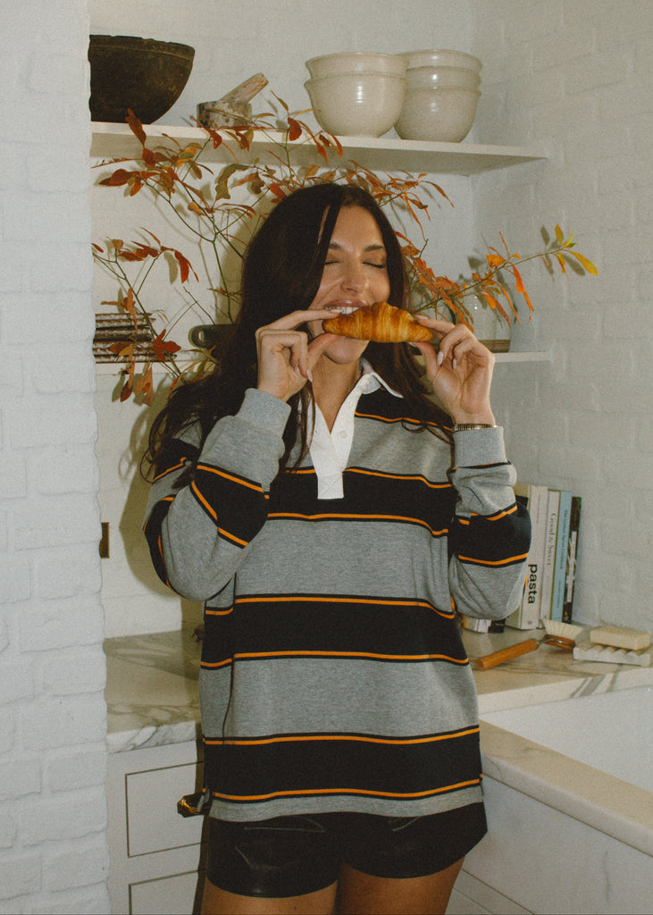 Shop ProvisionWrap yourself in the timeless elegance of this striped grey and navy cotton collared shirt, where comfort and style meet in perfect harmony. The long sleeves flow gracefully, offering warmth and elegance for any occasion, whether you're strolling through autumn leaves or sipping coffee on a cozy afternoon. With its classic collar and effortless charm, this shirt isn’t just an outfit—it’s a love letter to simple beauty and lasting style.