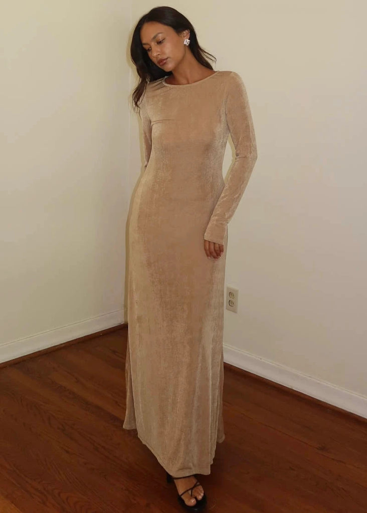 This long sleeve maxi dress combines effortless elegance with all-day comfort, perfect for any occasion. Crafted from a soft, flowy fabric, it drapes beautifully to create a flattering silhouette that moves with you. The long sleeves add a touch of sophistication and warmth, making it an ideal choice for cooler weather or evening events. Versatile and timeless, this maxi dress can be dressed up with accessories or worn casually, offering endless styling possibilities.