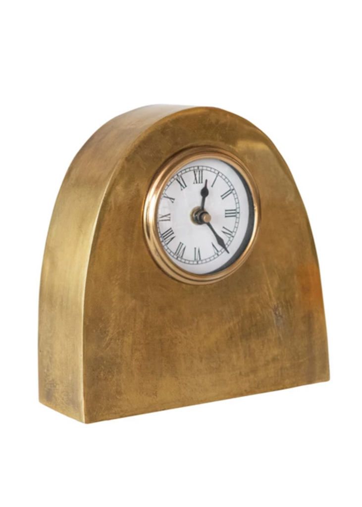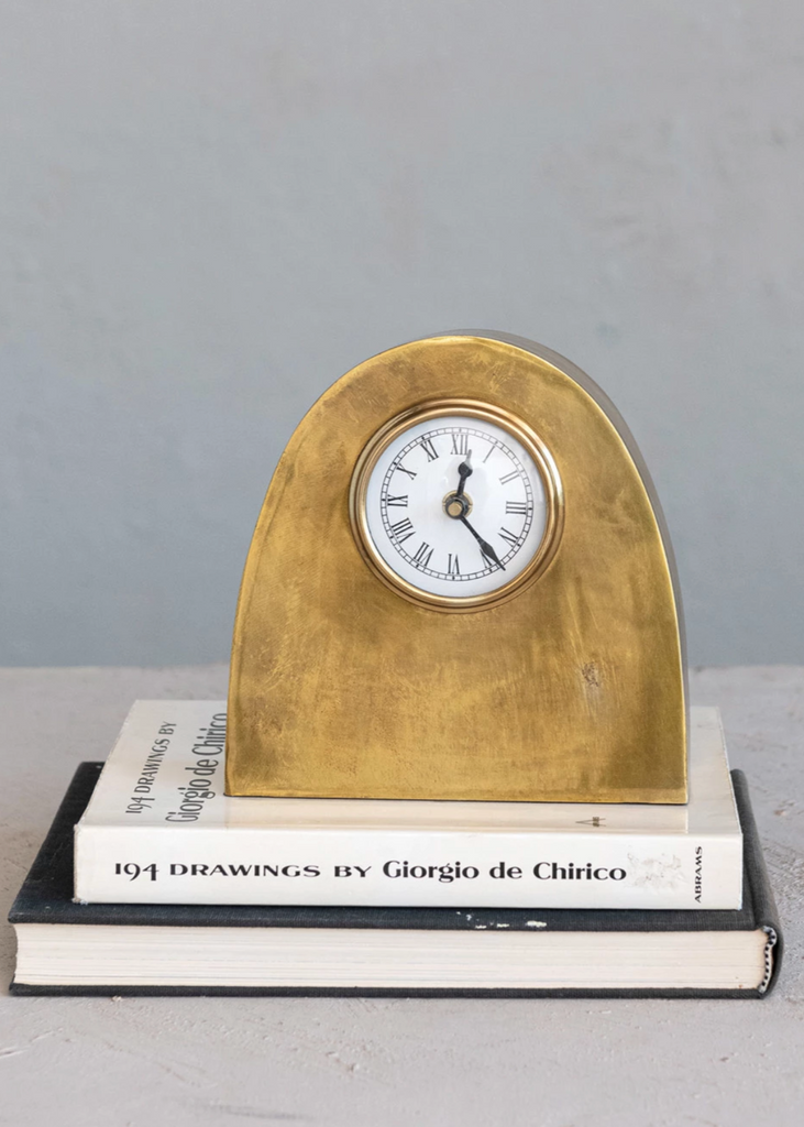 Shop ProvisionThe metal mantel clock with an antique gold finish is a stunning piece that adds a touch of elegance to any space. Its compact size makes it perfect for displaying on a mantel, desk, or shelf, while its vintage-inspired design brings a classic charm. The clock's gold finish gives it a luxurious look, and the metal construction ensures durability and longevity.