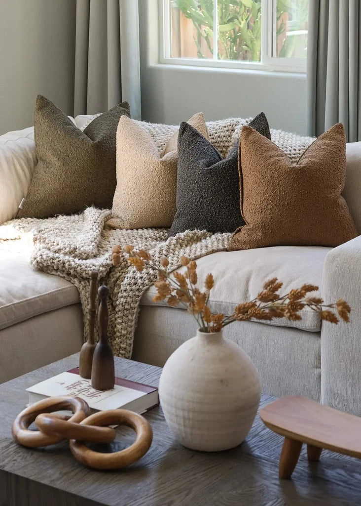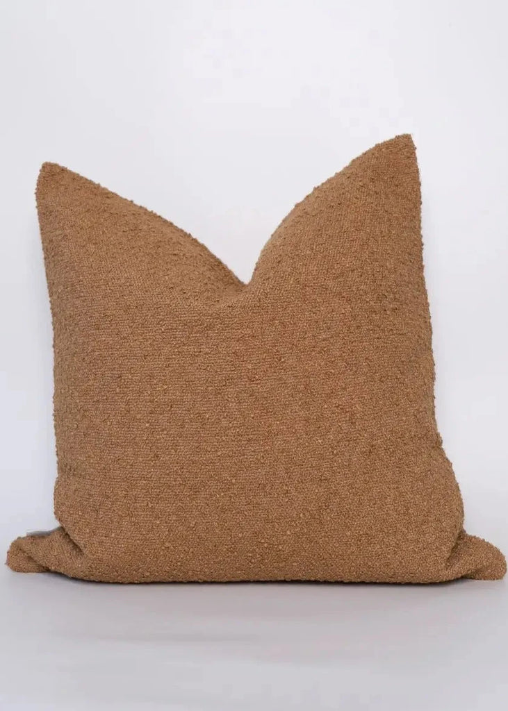 The Chestnut Pillow Cover is our Classic Bouclé Pillow, sized at 20x20 inches. Crafted from a blend of 85% polyester and 15% acrylic in a sophisticated tan brown shade, this pillow features the same luxurious fabric on both the front and back. Please note that the pillow insert is not included with your purchase.