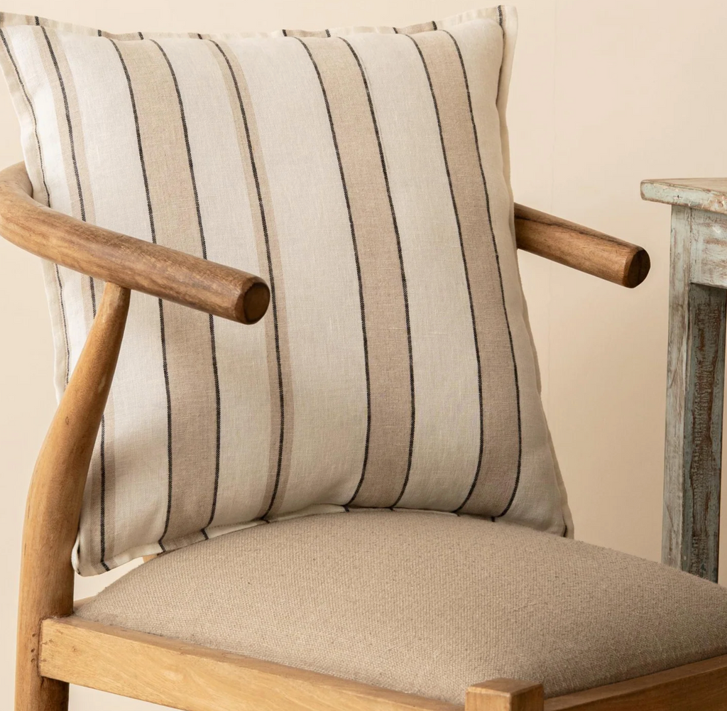 Shop ProvisionThe Kester Pillow Cover features a sophisticated design with thick white and beige stripes accented by delicate small black lines. Crafted from quality linen, this 24x24 inch cover offers both durability and a refined texture, making it an ideal choice to elevate your living space with subtle elegance and timeless style.