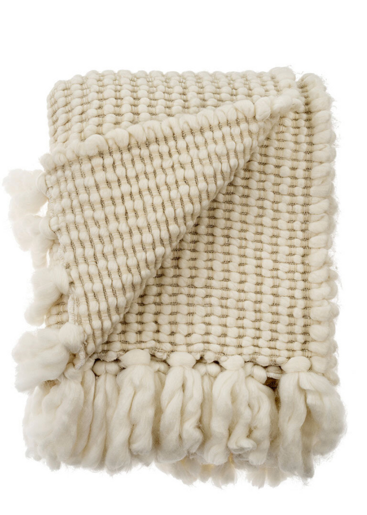With a seriously chunky knit, hand knotted chubby tassels and a feathery soft feel, the Penny Wool Throw will be one you reach for time and time again. Feel the warmth draped over your lap while reading or arrange it artfully at the end of your bed for a luxurious welcoming look. The Penny Wool Throw is offered in stone cream as well as a creamy white. This item is hand wash only.