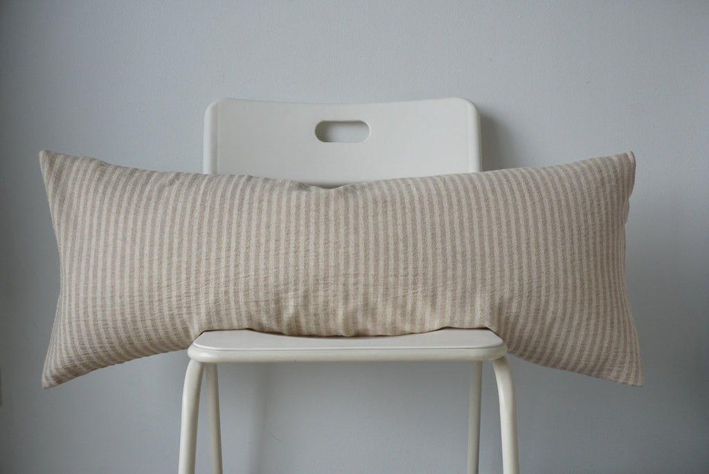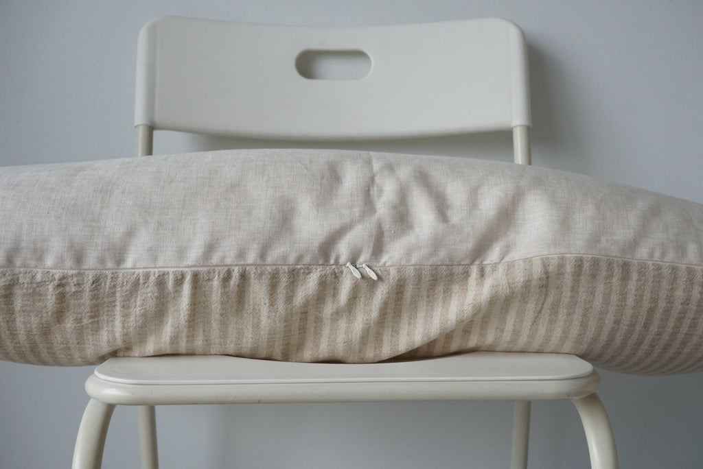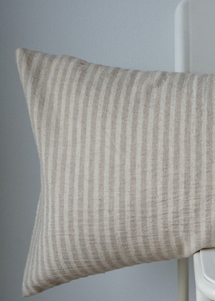 A unique pillow case made from fabric hemp blend linen natural color Textile ethnic.