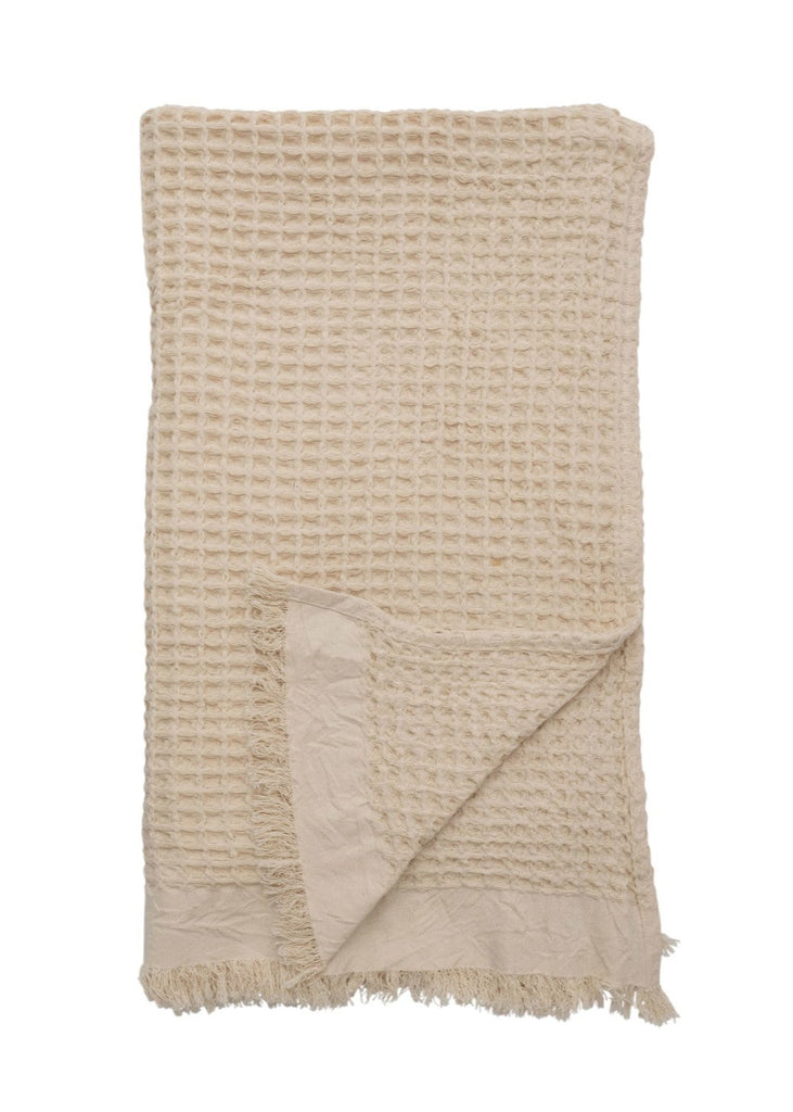 Introducing the Ollie Throw, a testament to comfort and timeless style. Crafted from 100% cotton in a cozy waffle weave design, this throw measures 60 inches in length and 50 inches in width, providing ample coverage for warmth and relaxation. The natural hue exudes a rustic charm, complemented by delicate fringe details that add a touch of elegance to its aesthetic. Whether draped over a couch, laid across a bed, or wrapped around you on cool evenings, the Ollie Throw promises to enhance any space with its understated beauty and soft texture. Embrace the versatility of cotton, known for its breathability and comfort, making it ideal for year-round use. Elevate your home decor with the Ollie Throw, where craftsmanship meets everyday luxury.