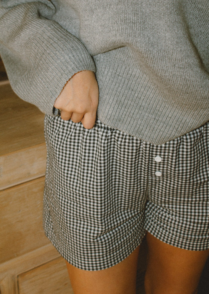 Shop ProvisionThe Kai Shorts are a comfortable piece, featuring a classic black and white gingham pattern that adds a timeless touch to your wardrobe. With a boxer-inspired fit, these shorts offer a relaxed, easygoing silhouette that’s perfect for lounging or casual outings. Whether paired with a simple tee or dressed up with a blouse, the Kai Shorts bring a fun, vintage-inspired vibe to causal look.